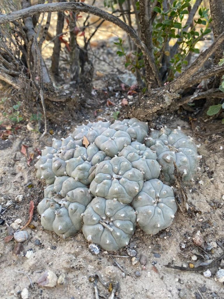 The narrow strip of land along the Rio Grande River in Southern and Western Texas is the only place in the United States where the Peyote cactus grows naturally and has flourished for millennia. These natural Peyote gardens are where humans have been harvesting from for more than 5000 years providing physical sustenance and spiritual connection for many communities, particularly in ceremonial practices. It is with deep regret that we acknowledge there are severe threats that are endangering this habitat. Climate change, non-sustainable harvesting practices, illegal poaching, urban and commercial development by energy, mining, and agricultural companies are making the harvestable acreage smaller and smaller by the week. These large companies buy this land for pennies on the dollar and bulldoze all the plant life to put up solar fields, wind turbines, mono crop greenhouses and to conduct mining operations.